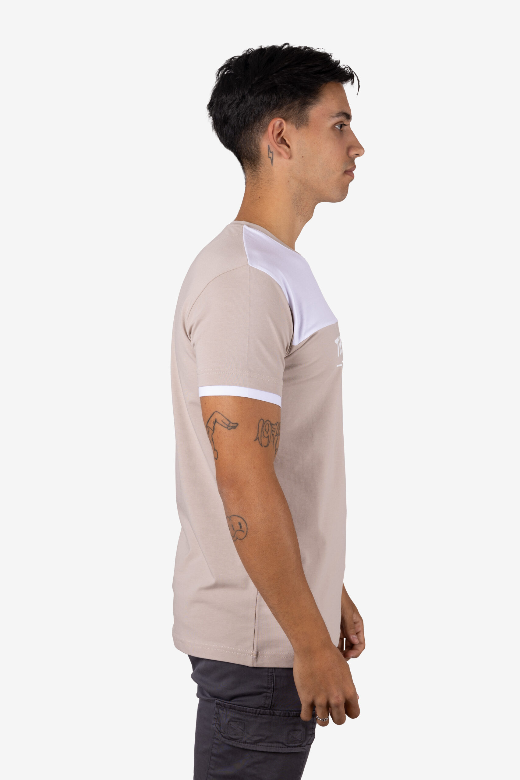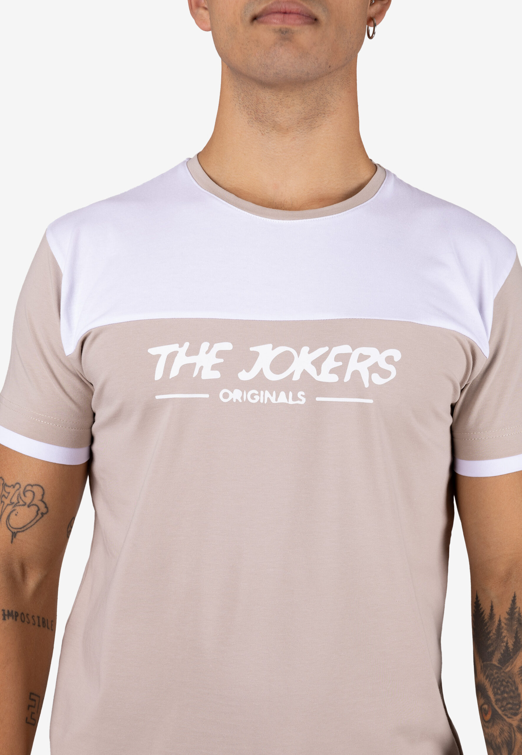 Camiseta bicolor con detalle blanco y logo THE JOKERS Beige