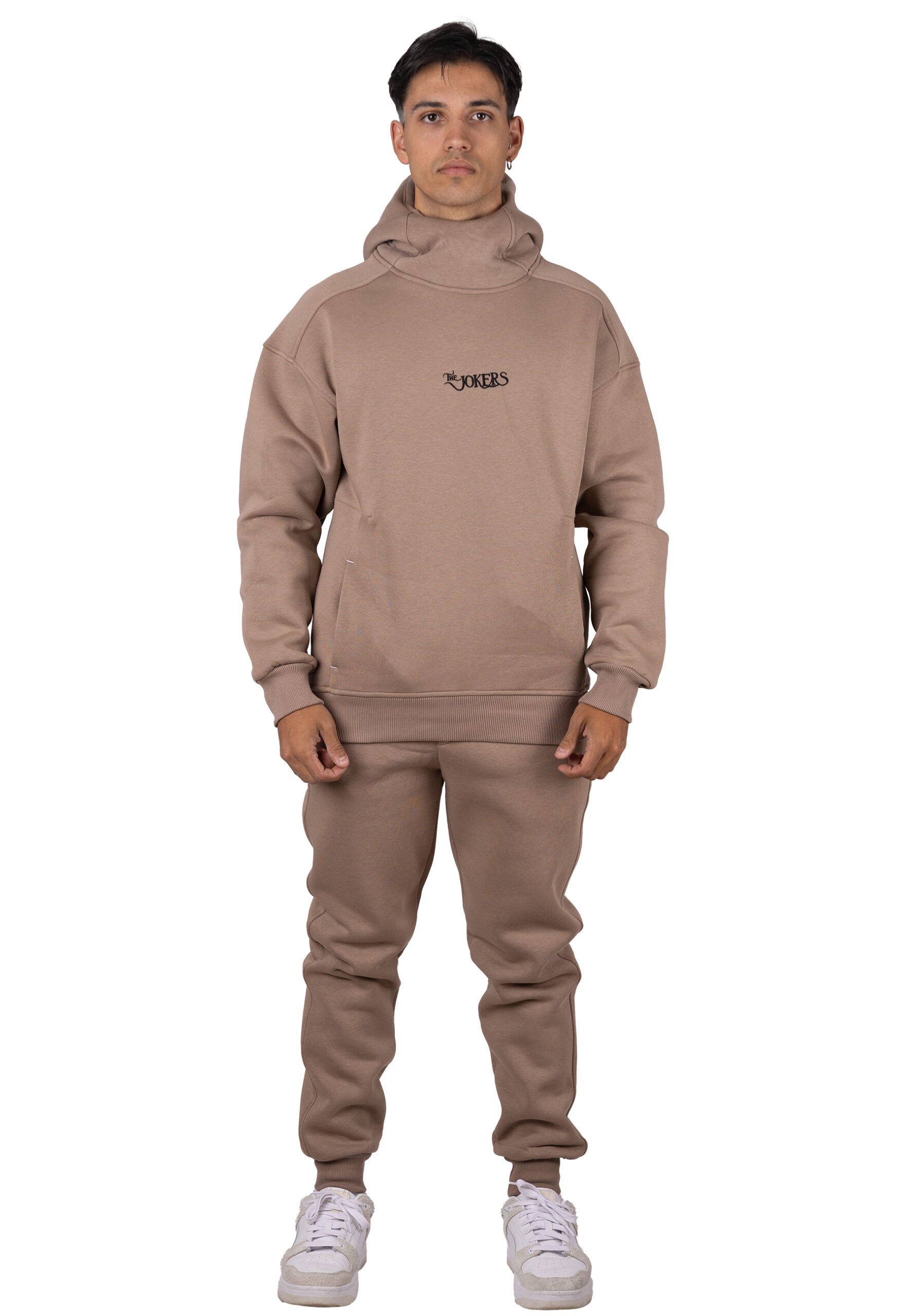 Conjunto de dos piezas compuesto por una sudadera con capucha y un pantalón tipo jogger a juego. La sudadera presenta un diseño limpio y minimalista en color camel, con detalle bordado “The Jokers” en la parte frontal. Incluye puños y bajo en canalé para una mejor sujeción y un tacto acogedor. El pantalón combina con la parte superior en el mismo tono, con cintura elástica y puños ajustados, ofreciendo comodidad y un ajuste moderno. Ideal para looks urbanos, viajes o días de descanso sin perder estilo.