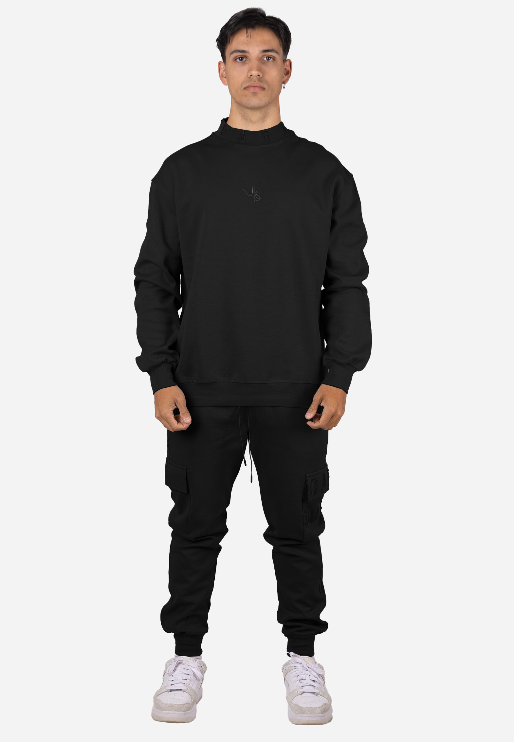 Conjunto de dos piezas formado por una sudadera de cuello alto y un pantalón jogger estilo cargo a juego. La sudadera presenta un diseño limpio en tono gris con cuello alto estructurado y detalle bordado minimalista en el pecho. El bajo y los puños en canalé garantizan un ajuste cómodo y mantienen la forma con el uso.