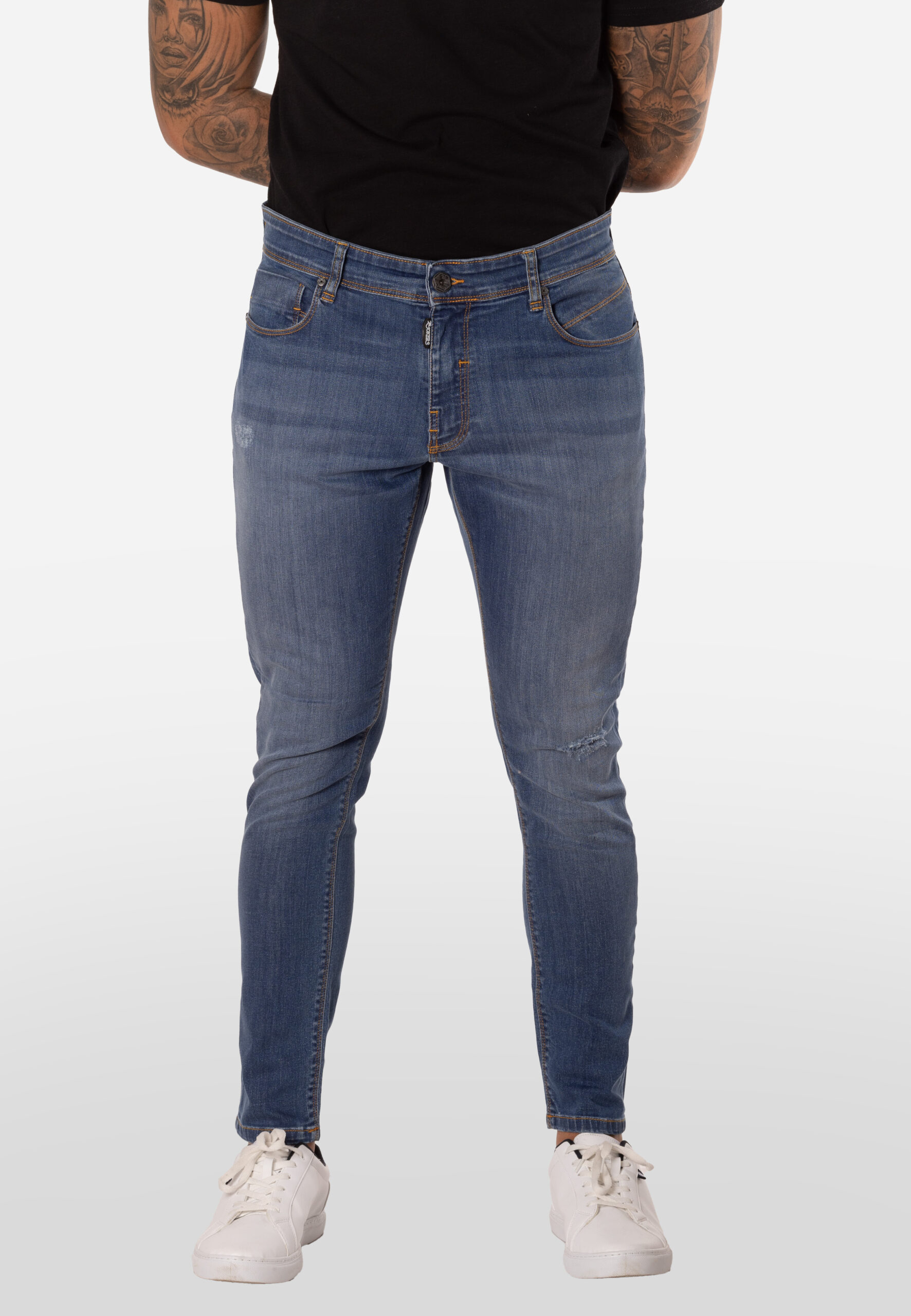Incluyen cinco bolsillos clásicos, cierre con botón y cremallera, costuras en contraste y detalles de desgaste ligero que realzan su estilo urbano. Perfectos para combinar con camisetas, sudaderas o camisas casuales.