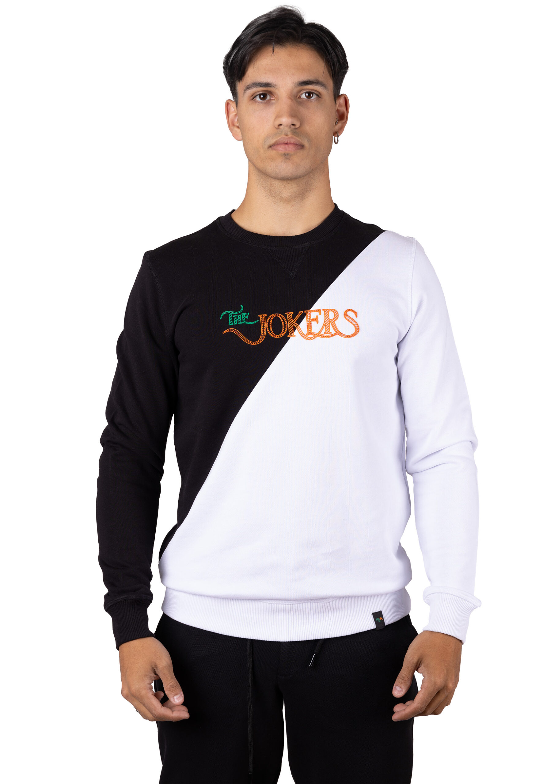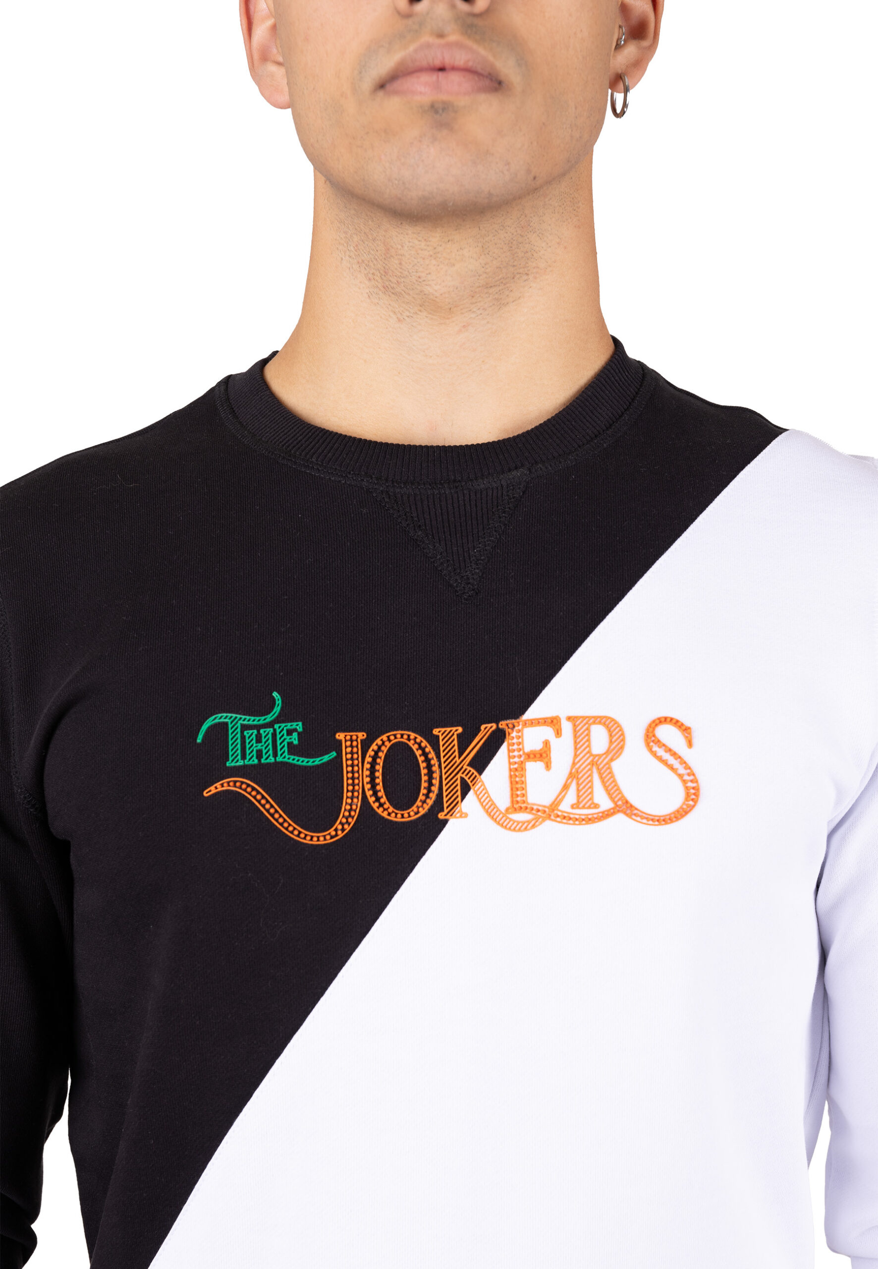 Sudadera de cuello caja confeccionada en algodón 100%, ofreciendo un tacto suave y máximo confort. Presenta un diseño limpio con bordado frontal multicolor “THE JOKERS”, aportando un toque distintivo y moderno. Acabados en puños y bajo de canalé para un ajuste perfecto. Ideal para un estilo casual con personalidad.