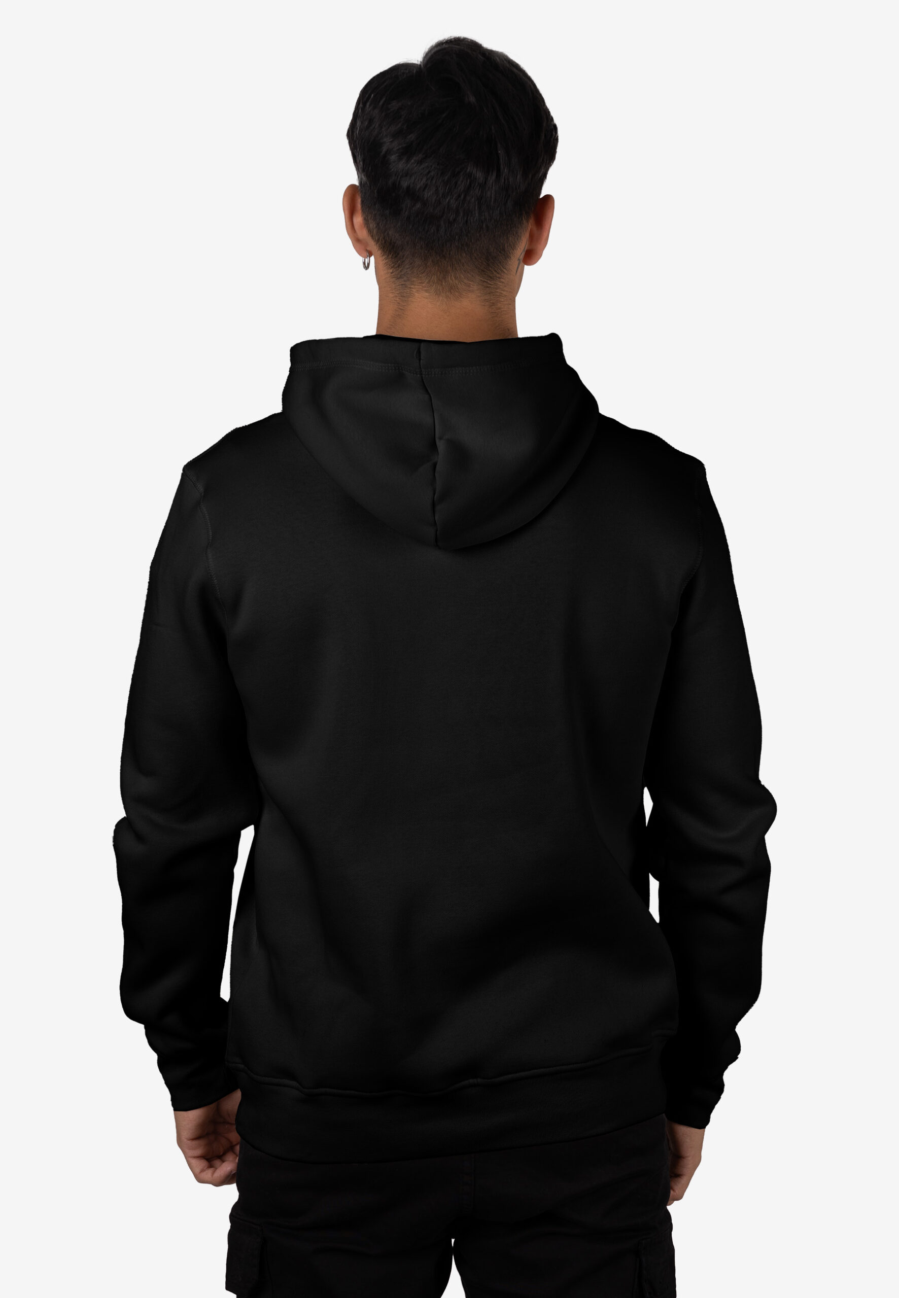 Sudadera con Capucha Negro con Estampado Frontal y Bolsillo Canguro